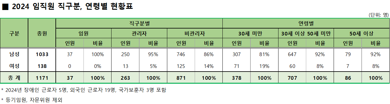안정적인 고용 정책과 더불어 코리아써키트에는 성별, 연령, 국적 등 다양한 배경을 가진 인재들이 함께 근무하고 있으며 다양한 인력 구성을 통해 조직 내 균형 있는 시각과 협업 기반을 강화하고 있습니다. 2024년 기준 관리자와 비관리자 전반에 걸쳐 여성, 청년, 외국인, 장애인 근로자들이 함께 일하고 있으며, 회사는 이를 반영하여 다양성을 고려한 인력 운영 체계를 유지하고 있습니다.