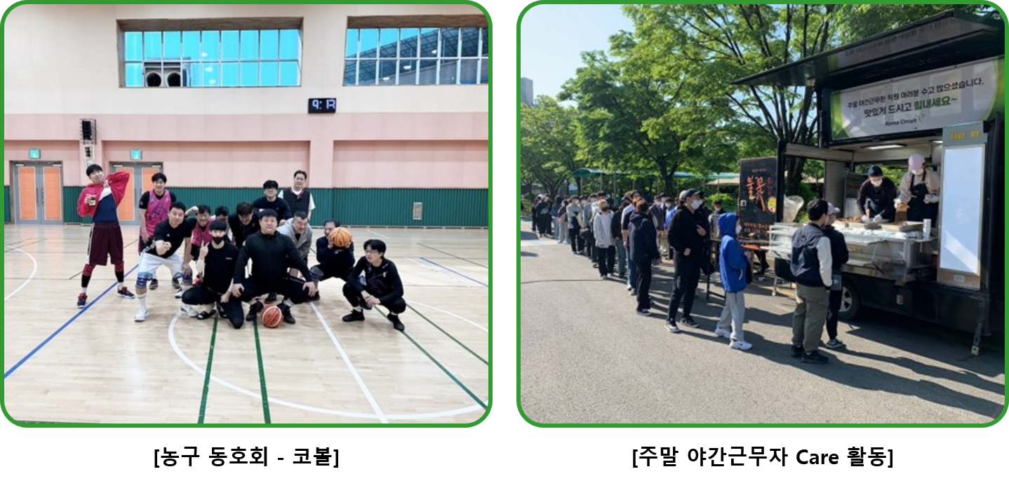 코리아써키트는 임직원의 삶의 질 향상과 일상 속 만족도를 높이기 위해 실질적으로 체감할 수 있는 다양한 생활 밀착형 복지제도를 운영하고 있습니다. 농구, 축구, 풋살, 낚시, 볼링 등 사내 동호회 활동을 지원하여 조직 내 유대감과 건강 증진을 도모하는 한편, 장기근속 포상, 자녀 학자금 지원, 정기 건강검진, 경조사 지원, 제휴 리조트 이용 등 개인과 가정을 아우르는 복지제도를 통해 생활 안정과 만족도를 높이고 있습니다. 또한, 기숙사 제공, 통근버스 및 사내식당 운영, 하절기 냉차 지원, 주말 야간근무자 대상 Care 활동 등 근무 편의와 현장 밀착형 지원까지 확대하며, 임직원이 일과 삶의 균형 속에서 보다 안정적이고 풍요로운 일상을 누릴 수 있도록 복지제도를 지속적으로 개선해 나가고 있습니다.